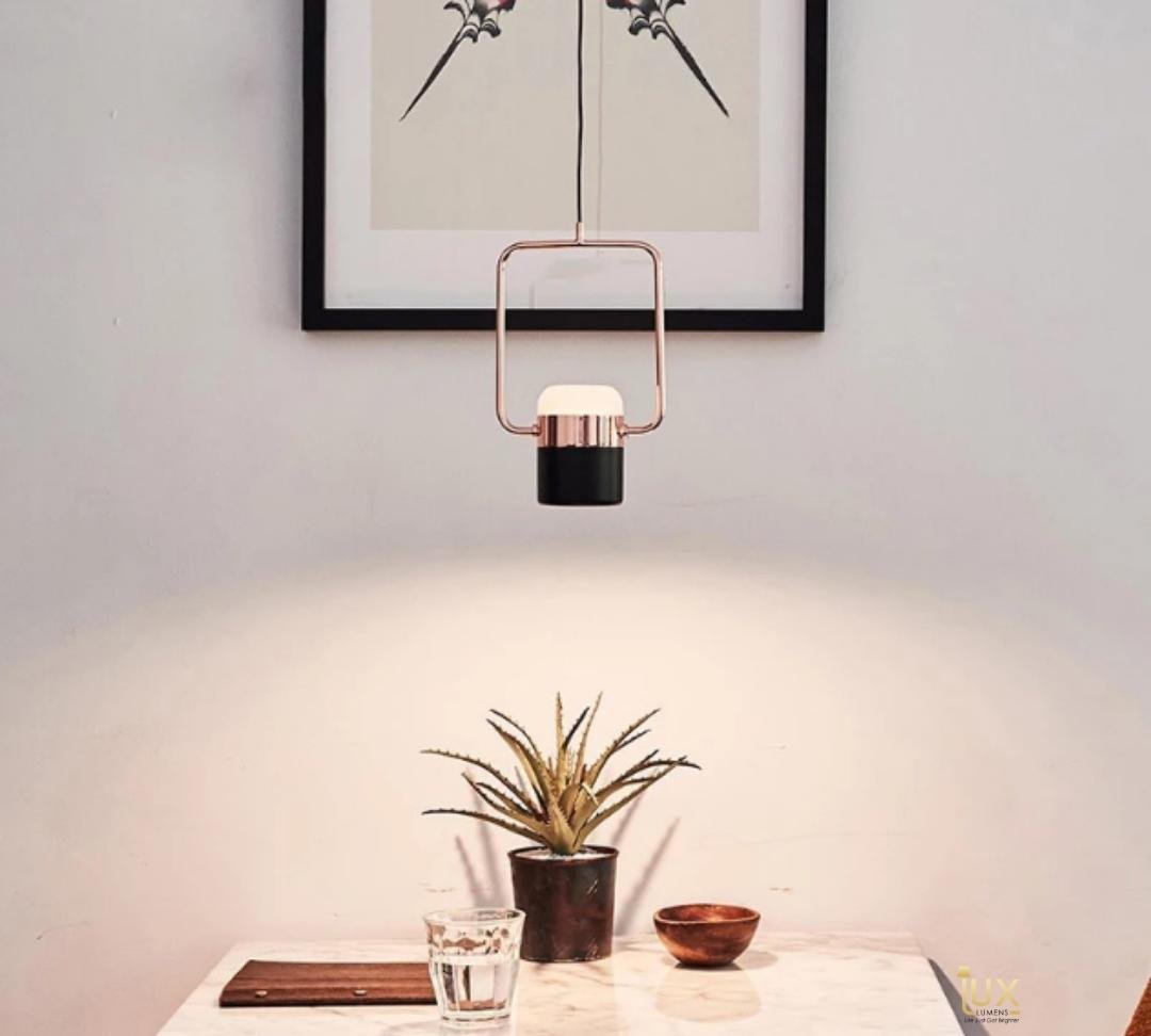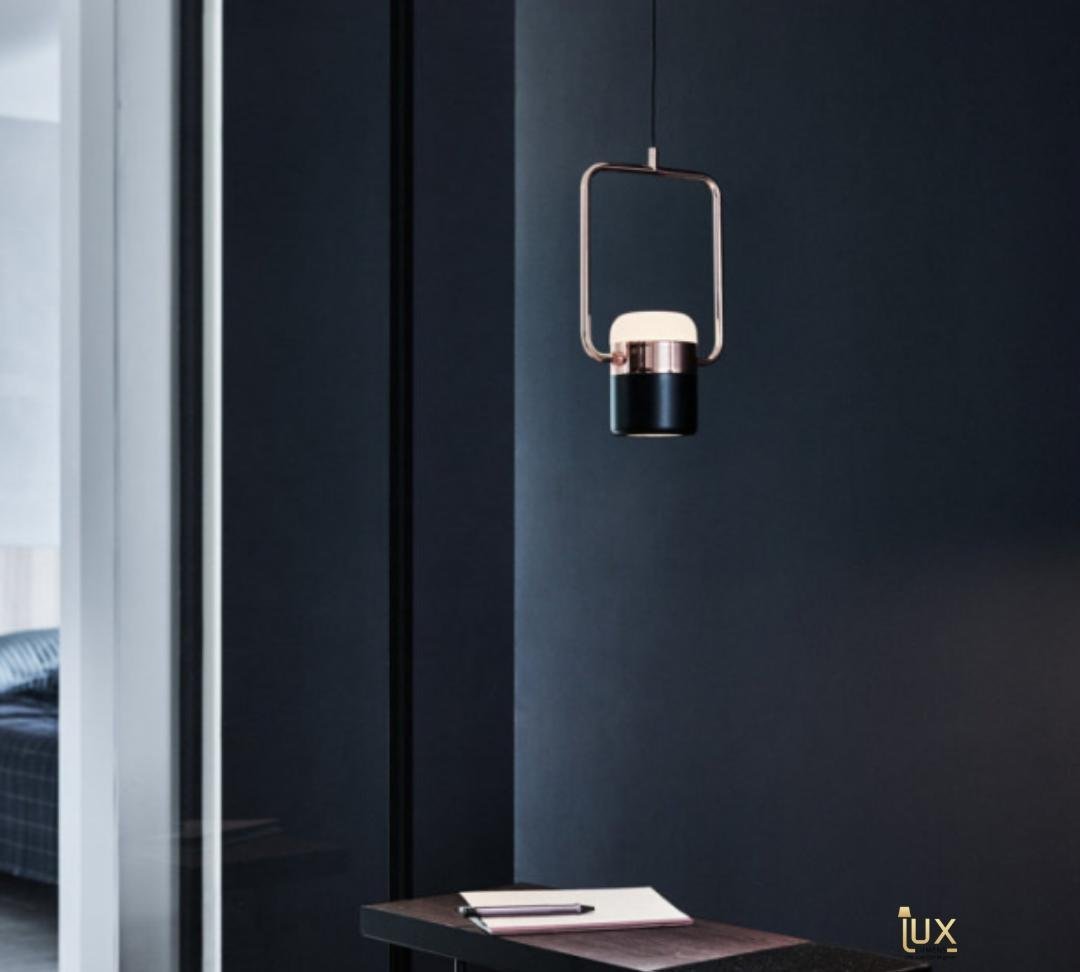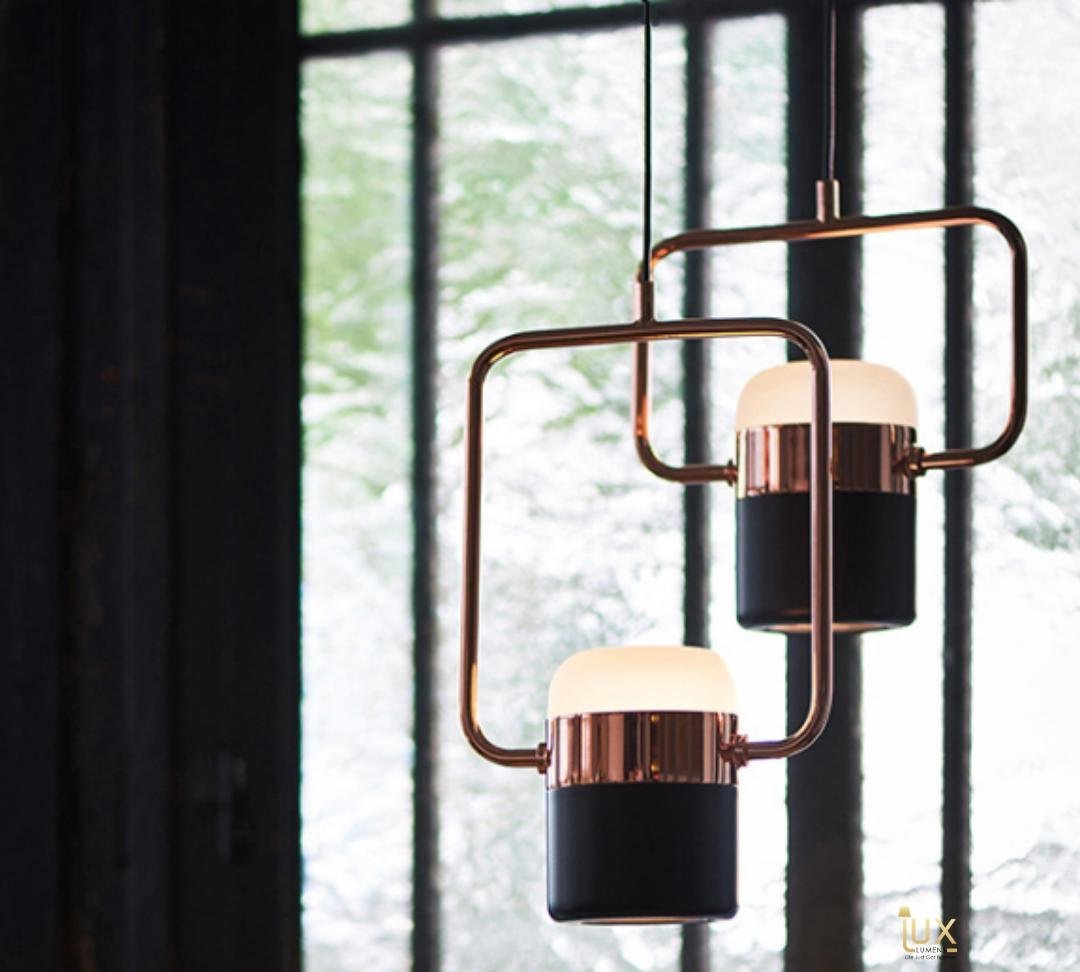 The geometric design of the Birk pendant light complements a range of spaces, from dining rooms to bedrooms, and even kitchen countertops.