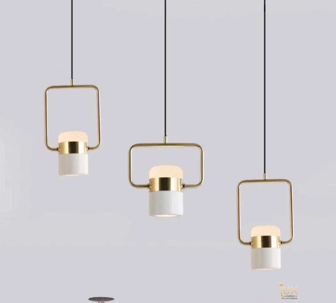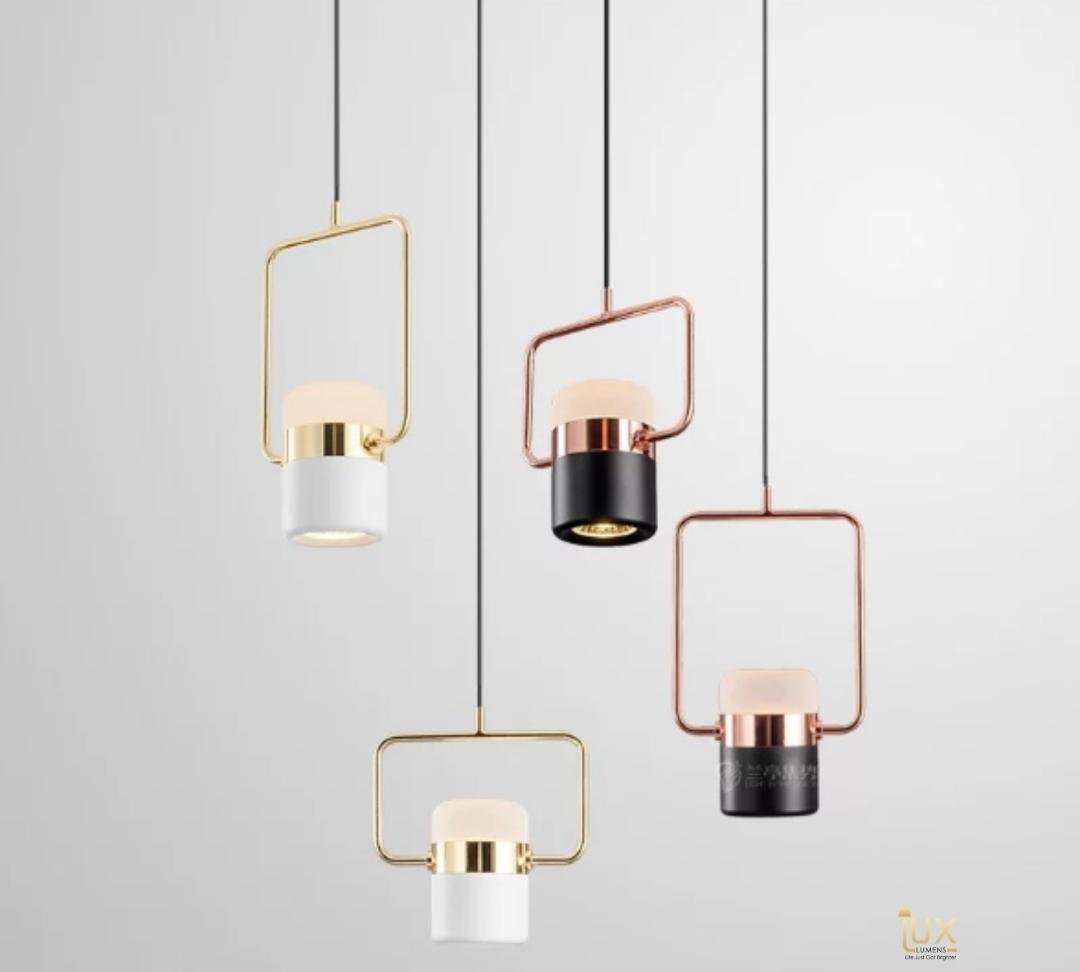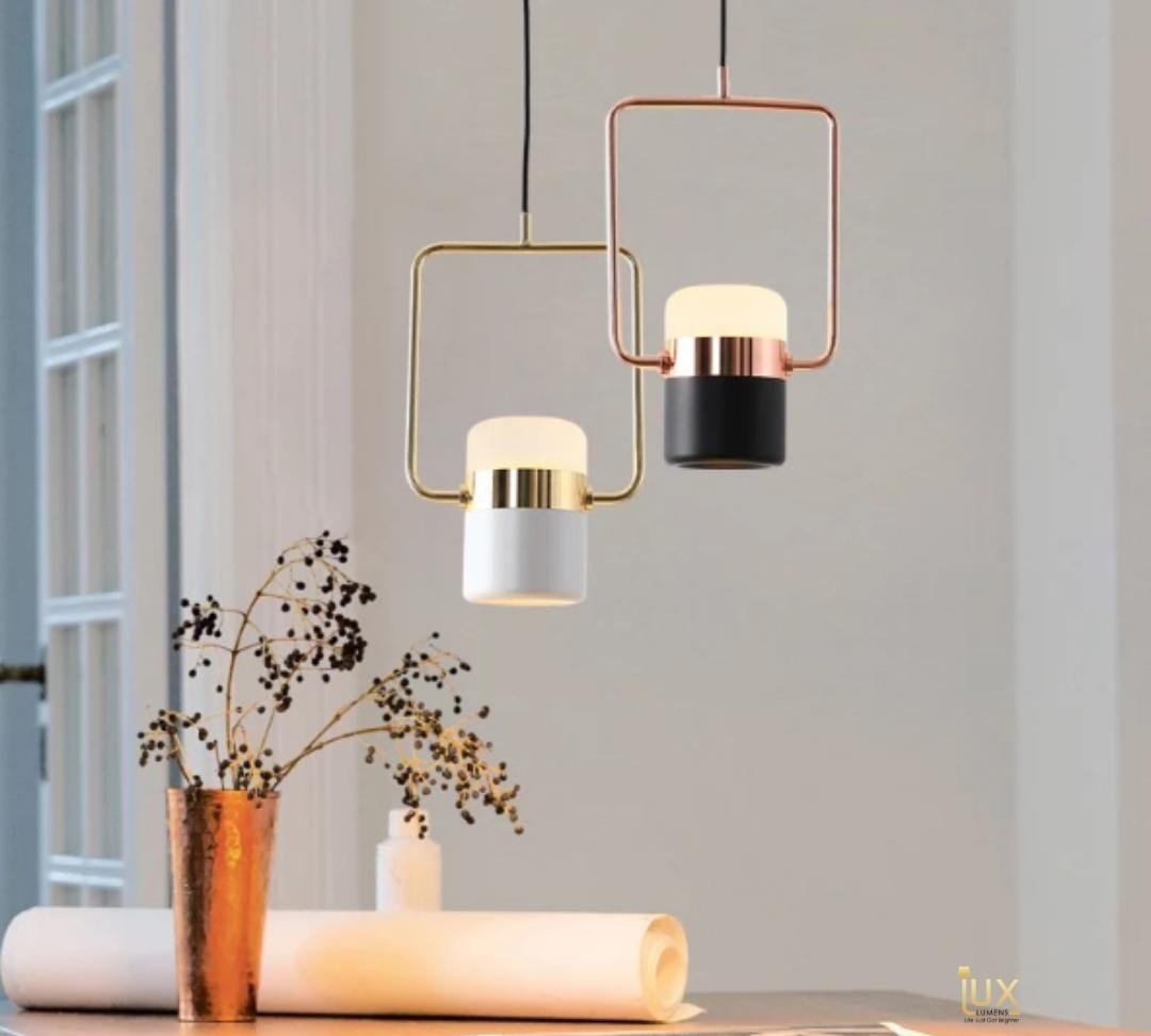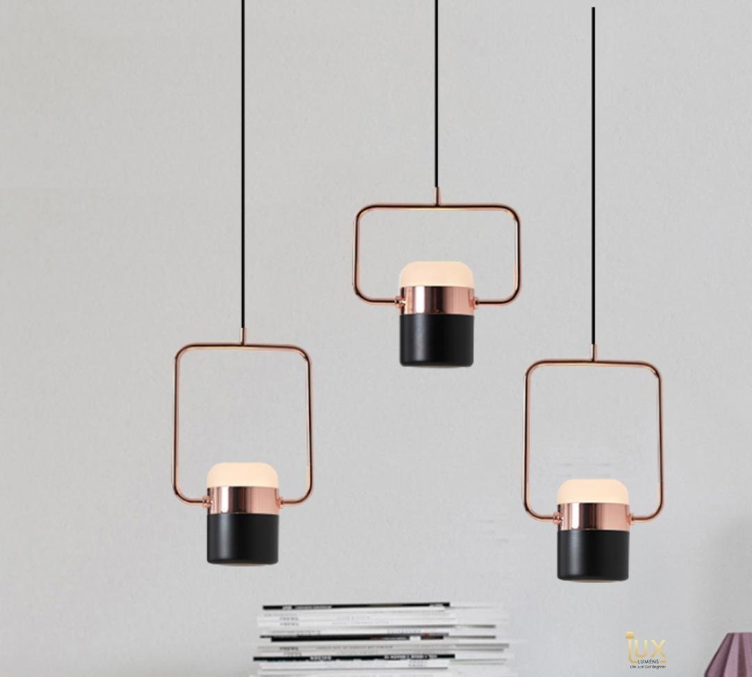 The geometric design of the Birk pendant light complements a range of spaces, from dining rooms to bedrooms, and even kitchen countertops.