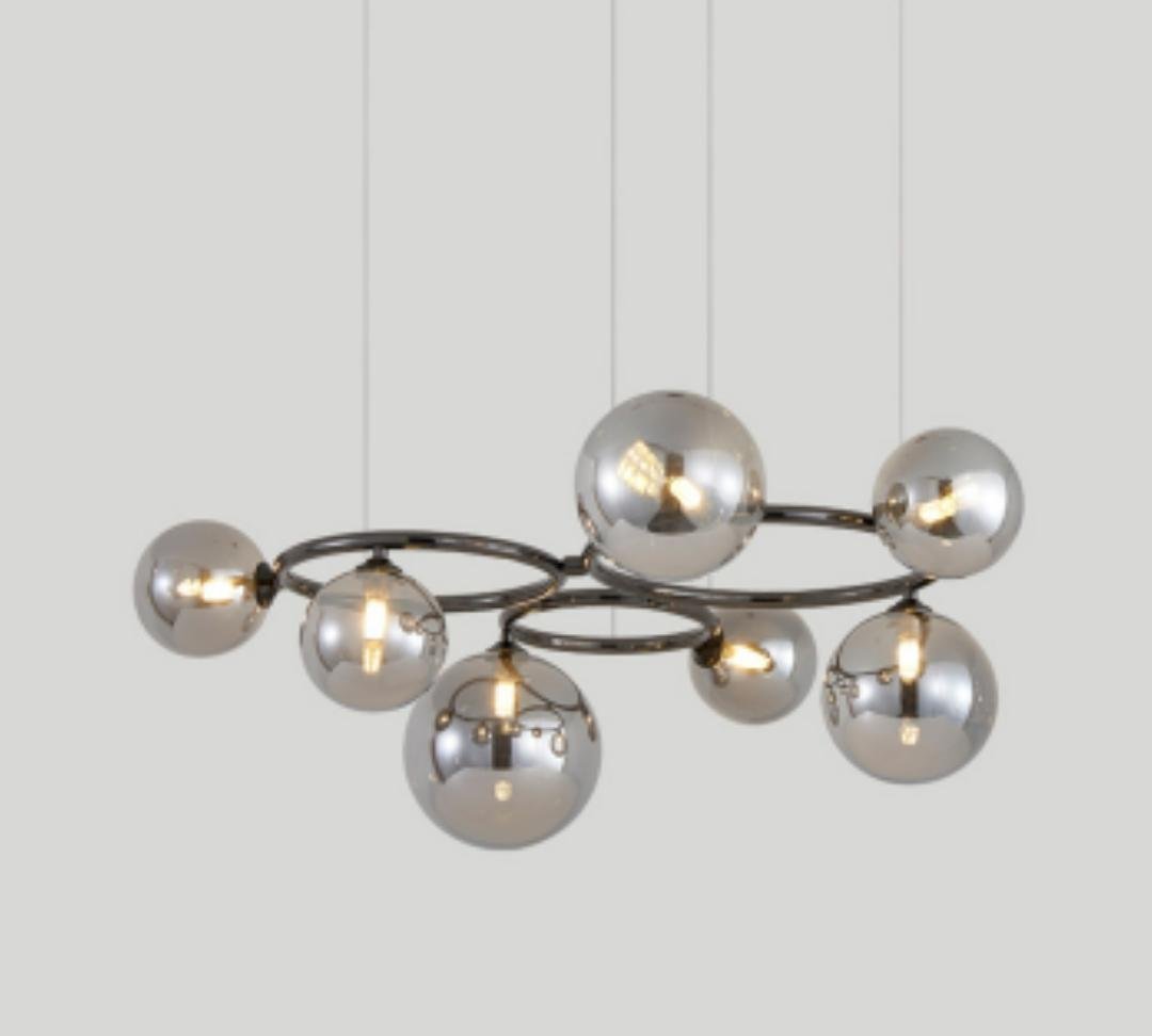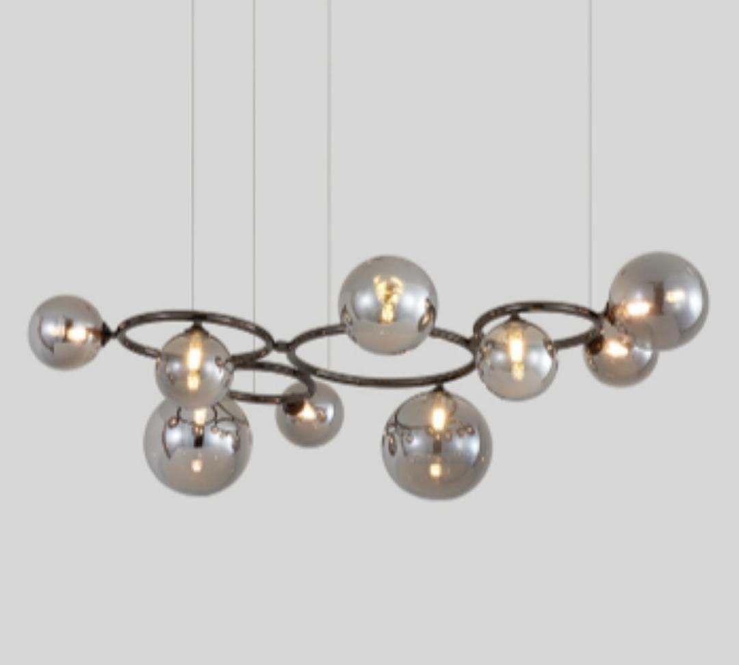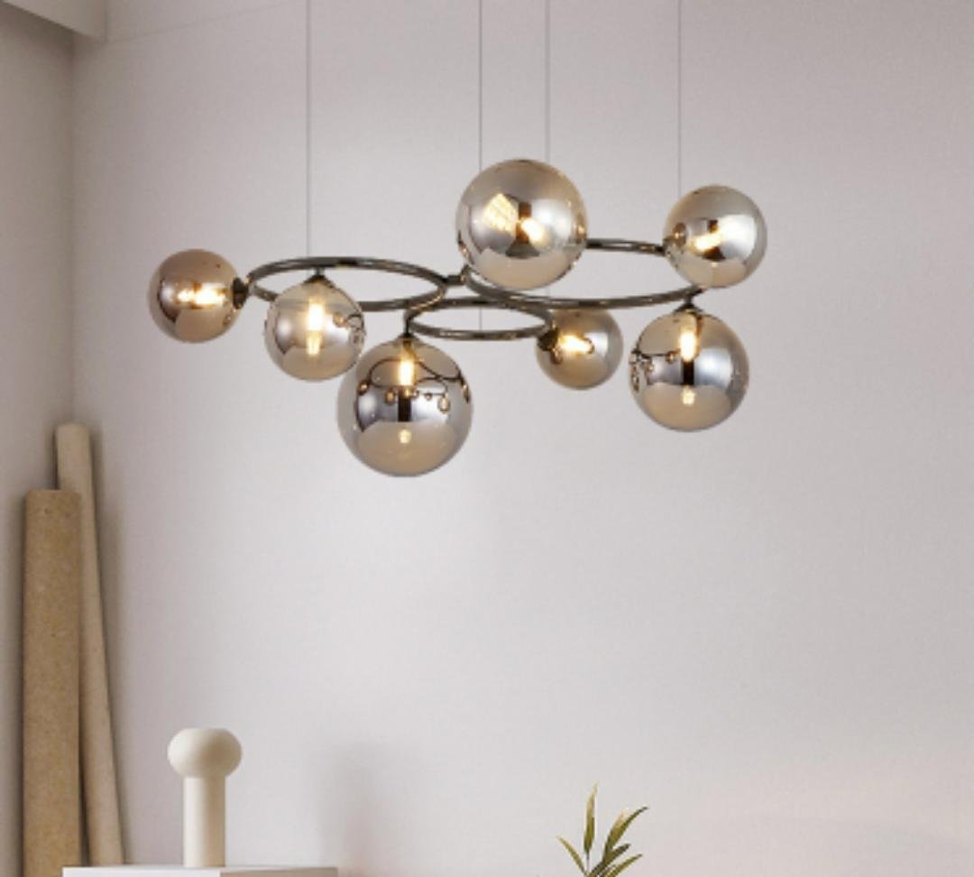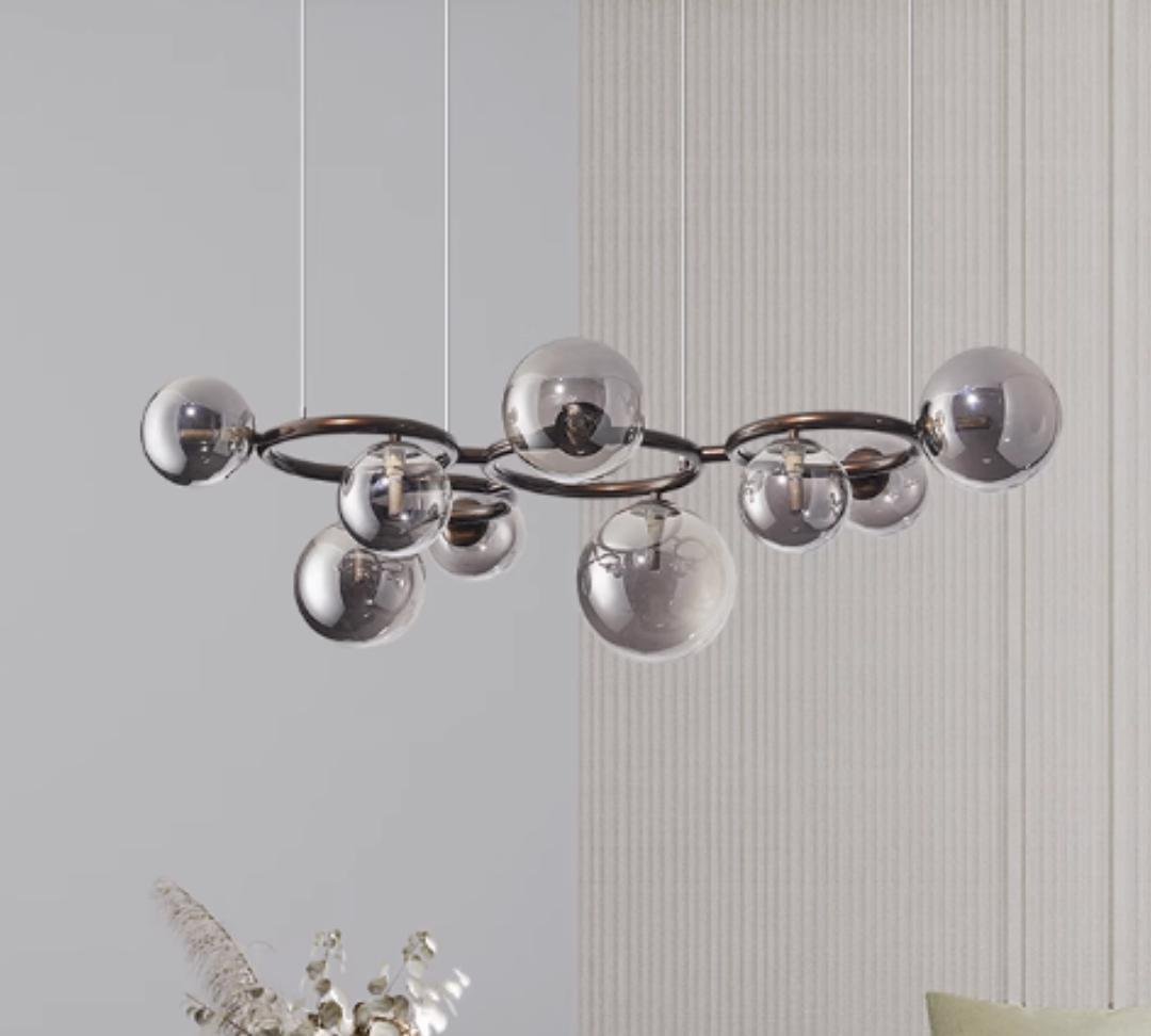 The Gala pendant light showcases a captivating display of spherical orbs, each emitting a soft, diffused glow. Perfect for contemporary spaces, it serves as a versatile piece that complements various decor styles, making it an ideal addition to living rooms or dining areas.