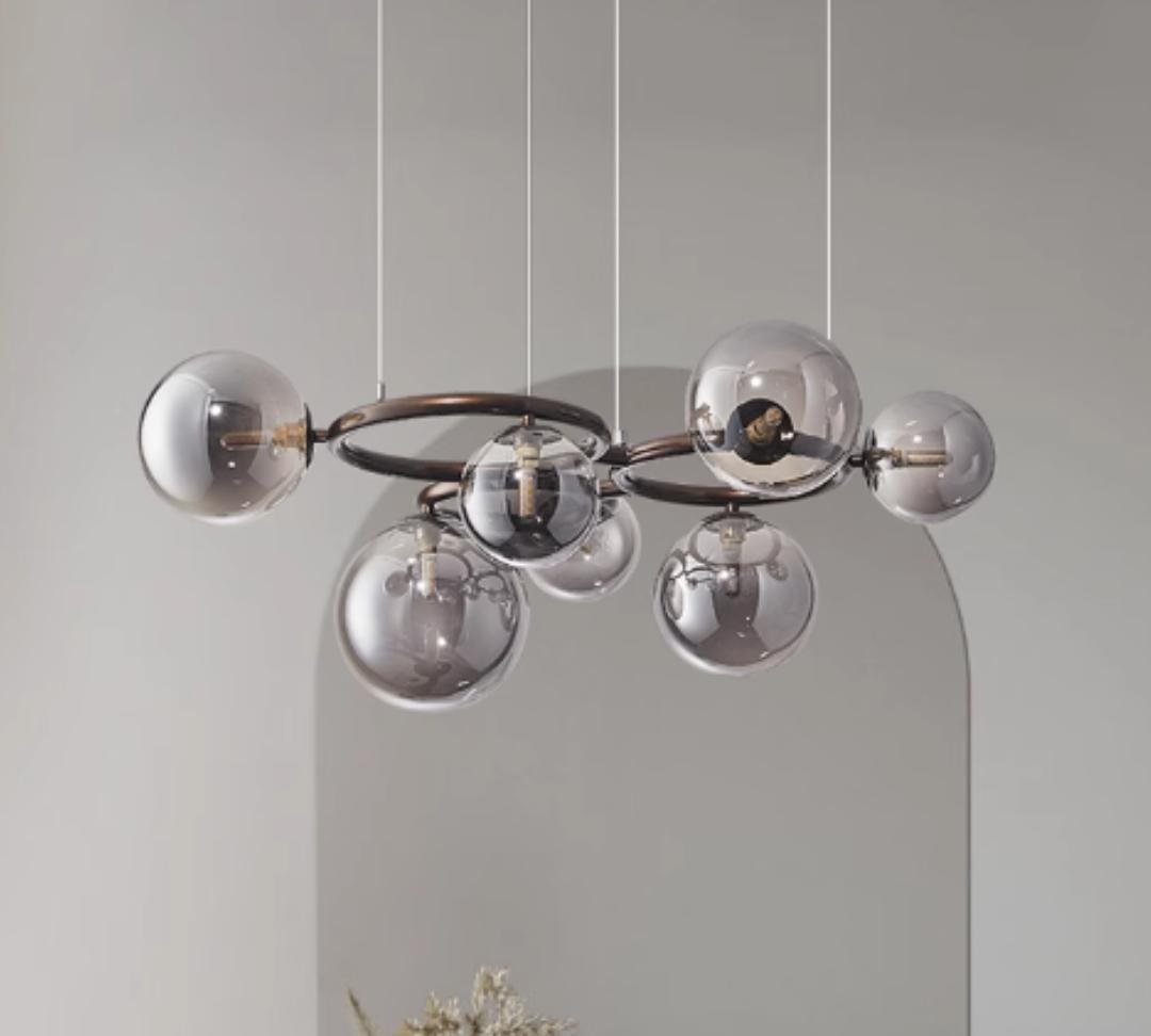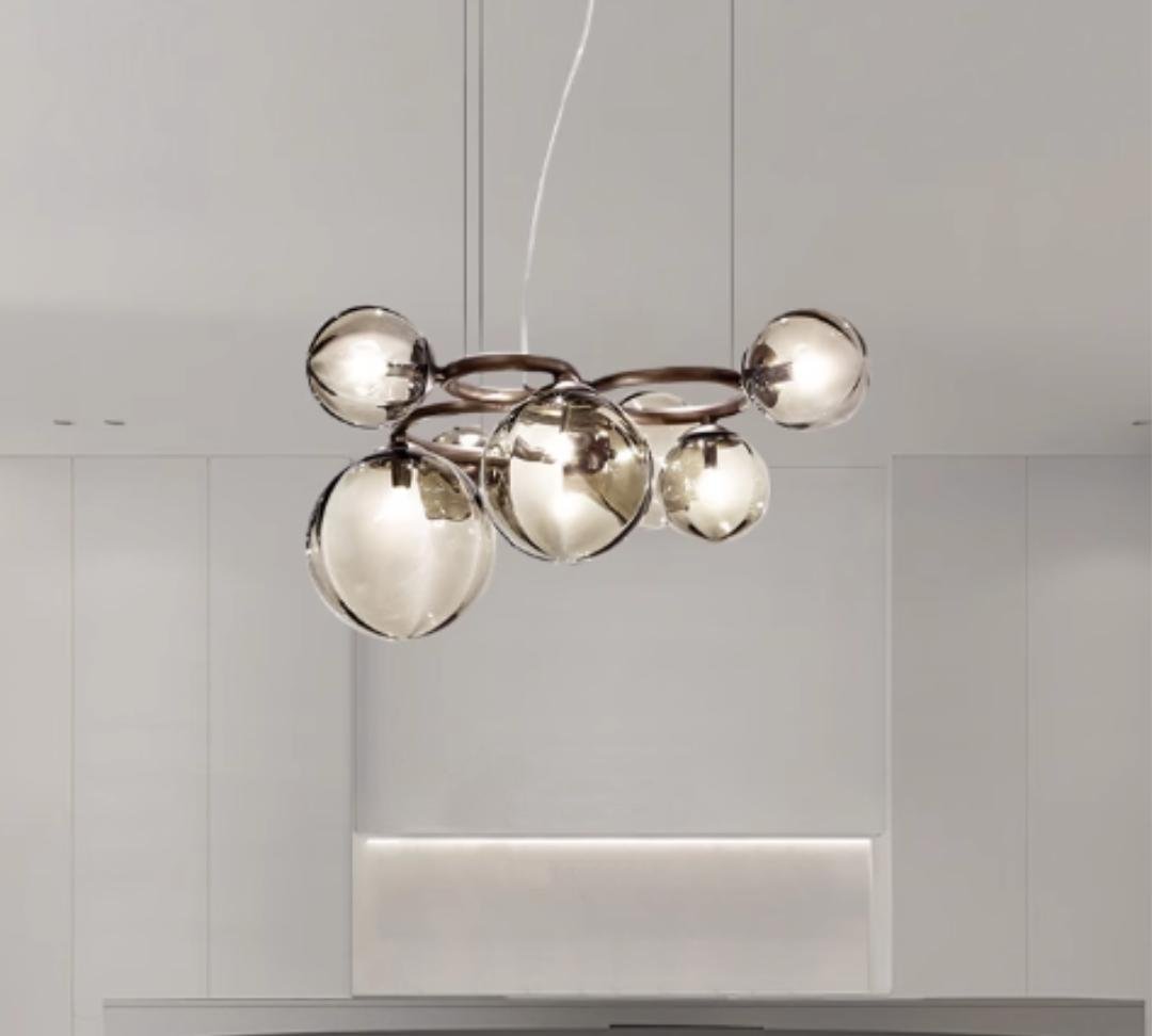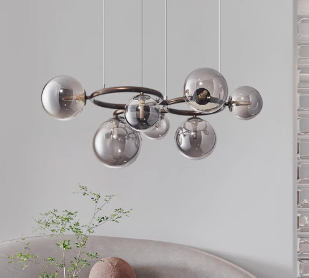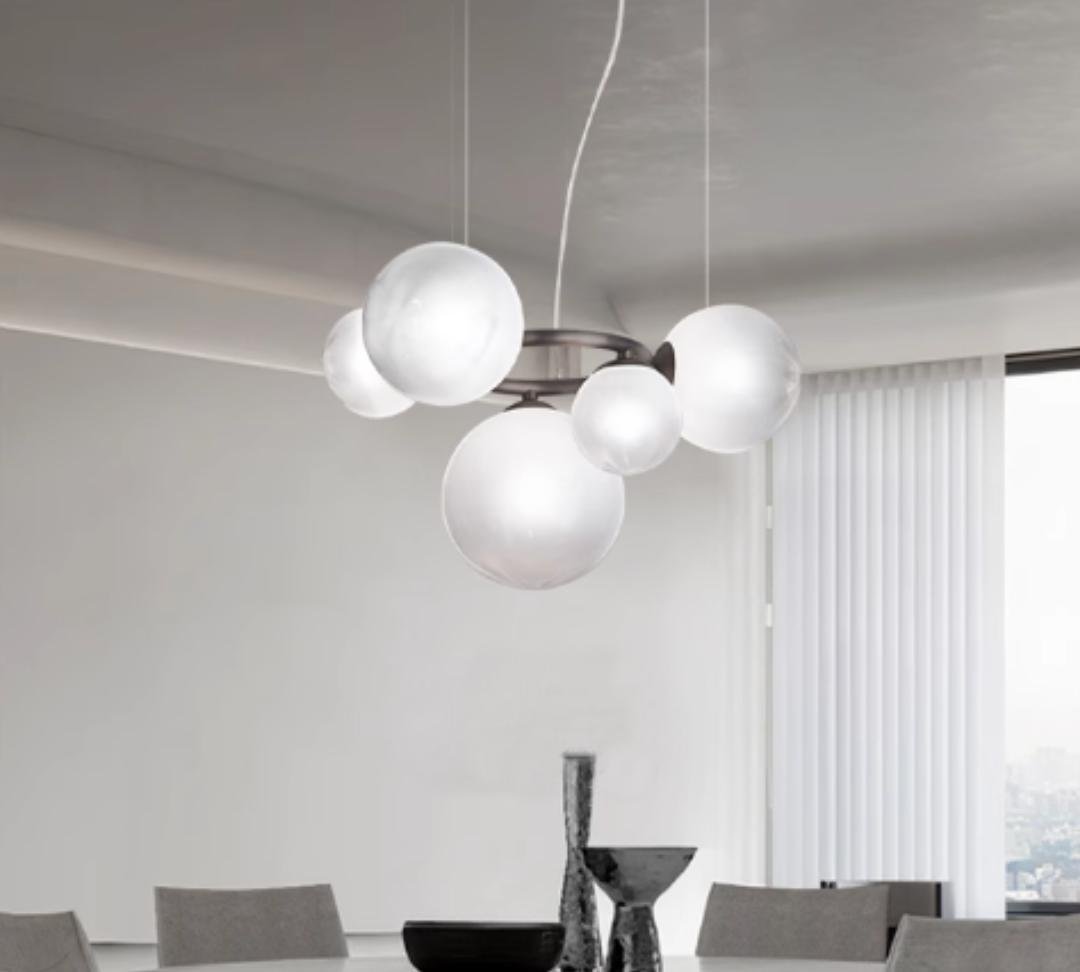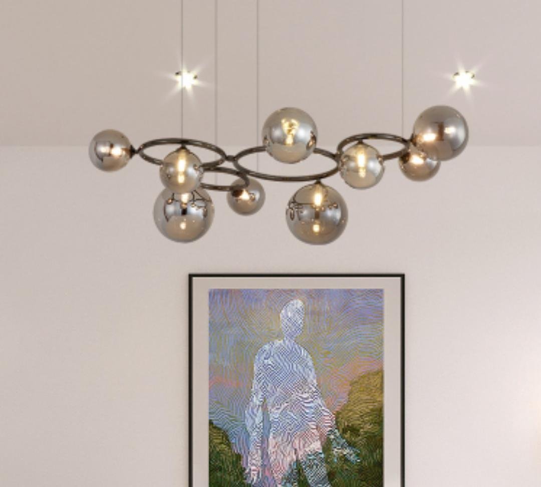 The Gala pendant light showcases a captivating display of spherical orbs, each emitting a soft, diffused glow. Perfect for contemporary spaces, it serves as a versatile piece that complements various decor styles, making it an ideal addition to living rooms or dining areas.
