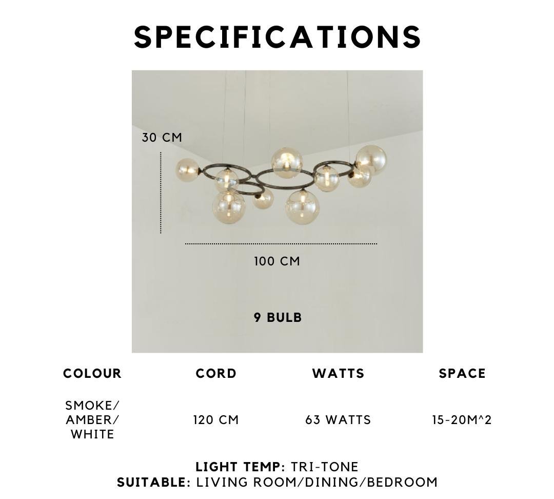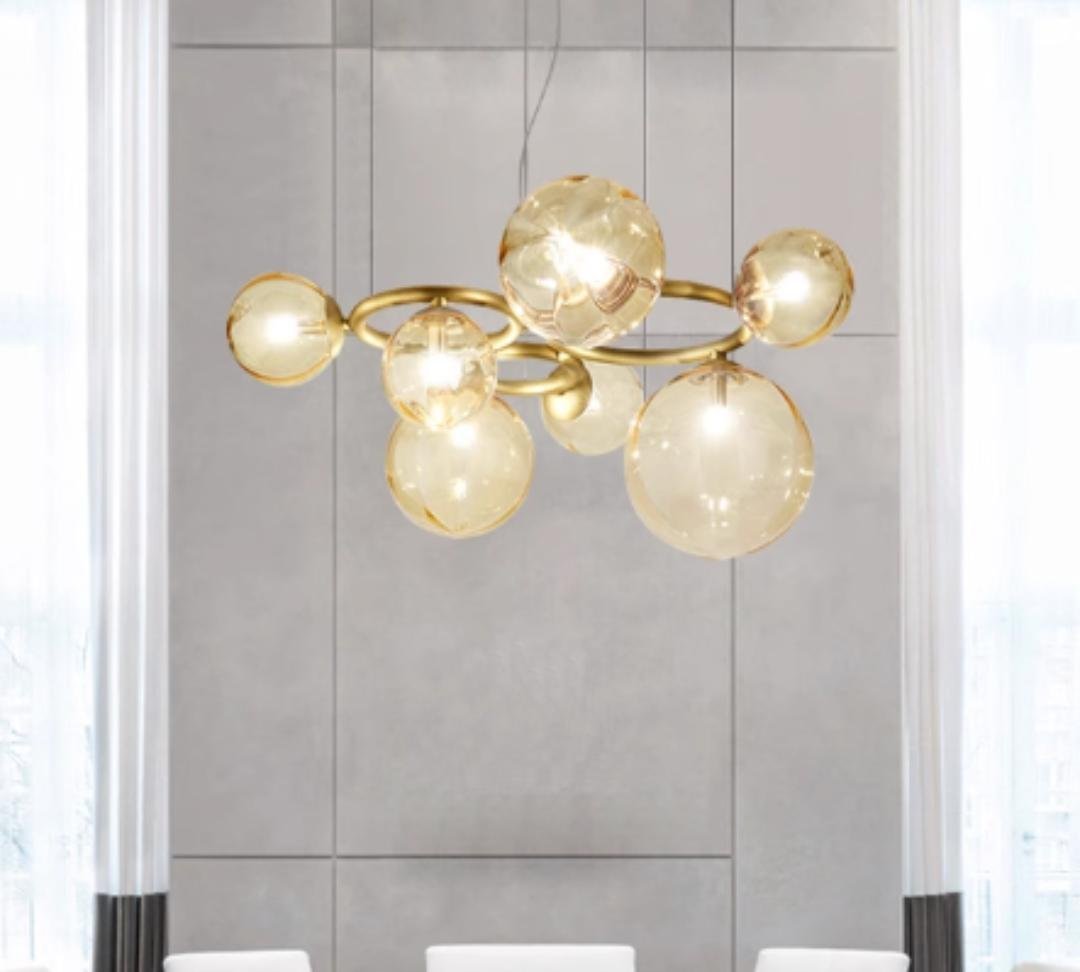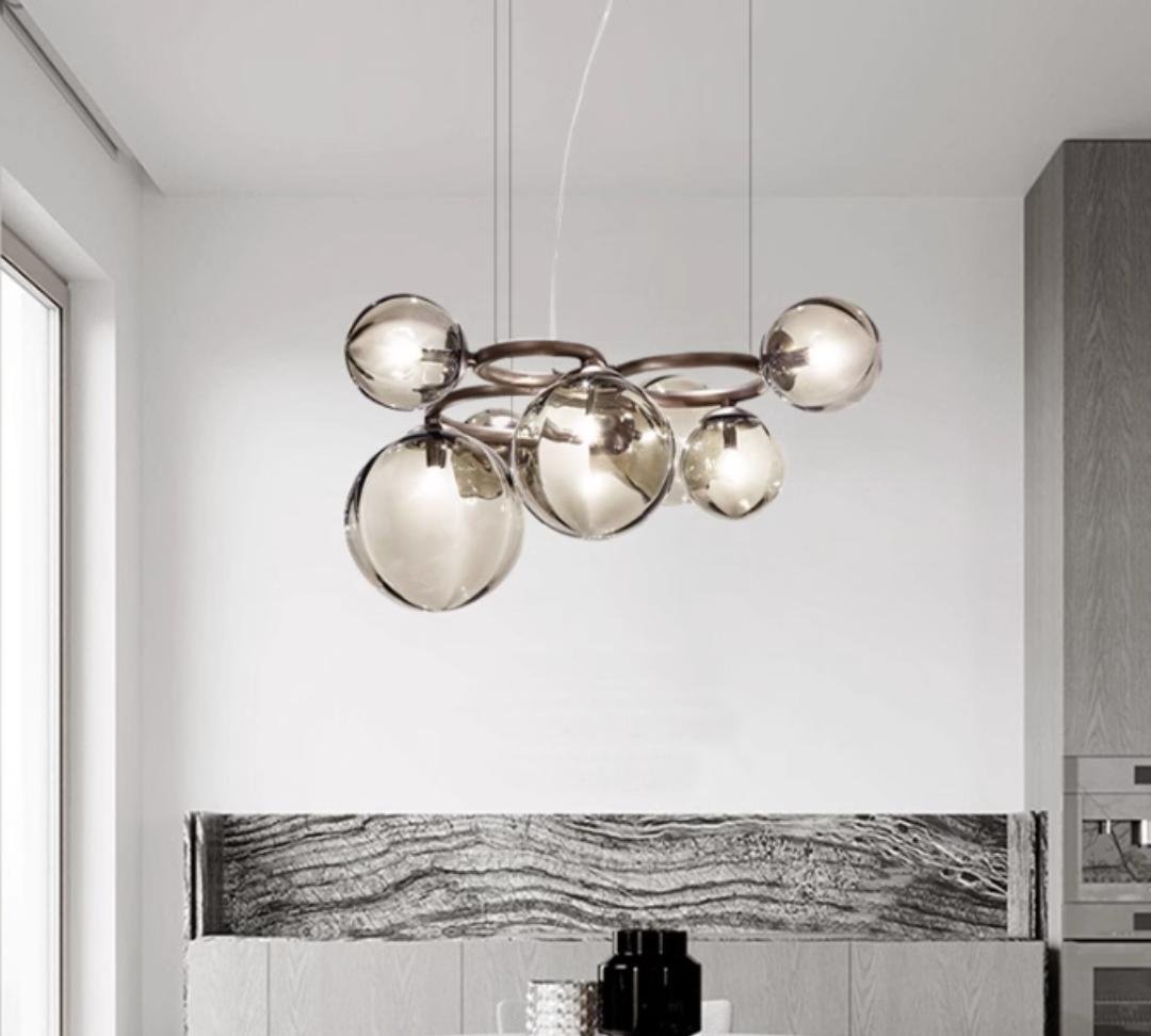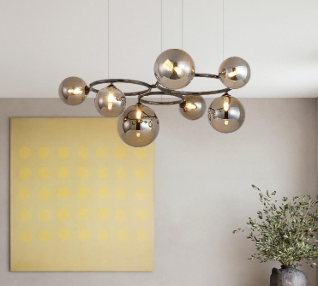 The Gala pendant light showcases a captivating display of spherical orbs, each emitting a soft, diffused glow. Perfect for contemporary spaces, it serves as a versatile piece that complements various decor styles, making it an ideal addition to living rooms or dining areas.