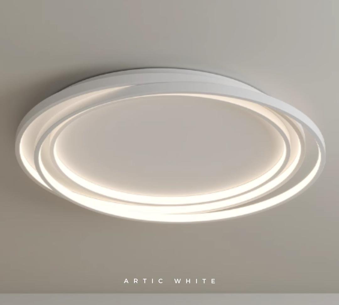 This unique ceiling light captivates with its sleek silhouette and innovative LED technology. The striking design emulates Galactic Rings, bringing a sense of wonder to any room. Perfectly versatile, it adapts to various spaces from kitchens to bedrooms, illuminating every corner with grace.