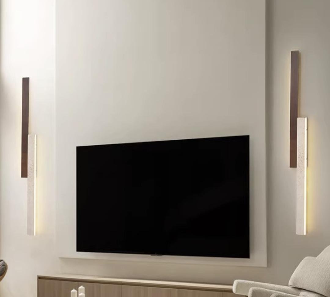 Elevate your living space with the Holmi wall light. Marrying rustic charm and modern design, this exquisite fixture crafted from travertine brings nature indoors. Its unique textures and warm glow add a refined touch to any room.