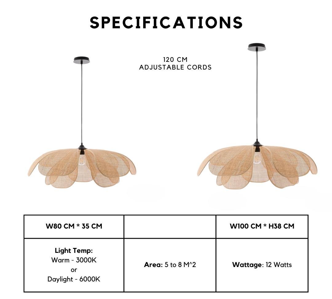 Experience the calming elegance of the Idunn with its petal canopy design that evokes a serene ambiance. Perfectly versatile, it complements a variety of interior styles, from contemporary to bohemian.