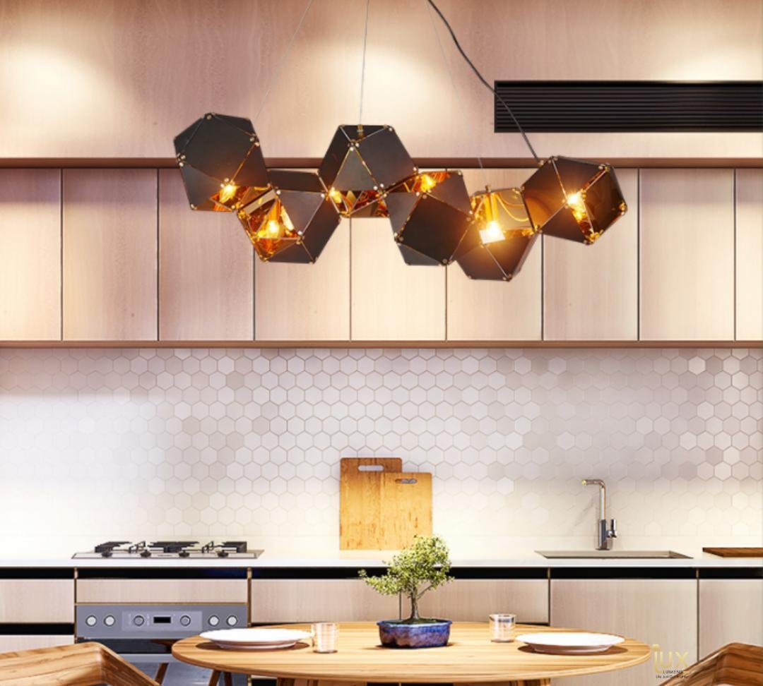 The geometric cluster design enhances your room’s aesthetic, ideal for dining rooms, modern kitchens, or statement hallways.