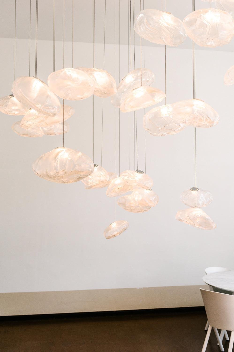 Experience the ethereal beauty of the Karl pendant light, where ancient Greek elegance meets modern design. Its flowing, fabric-like glass shapes create a captivating atmosphere in any room.