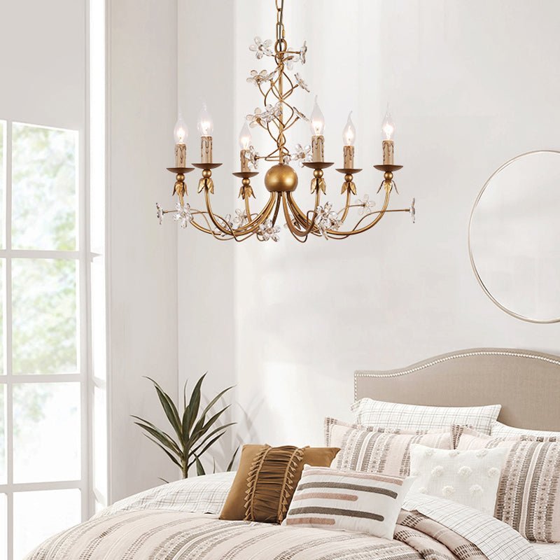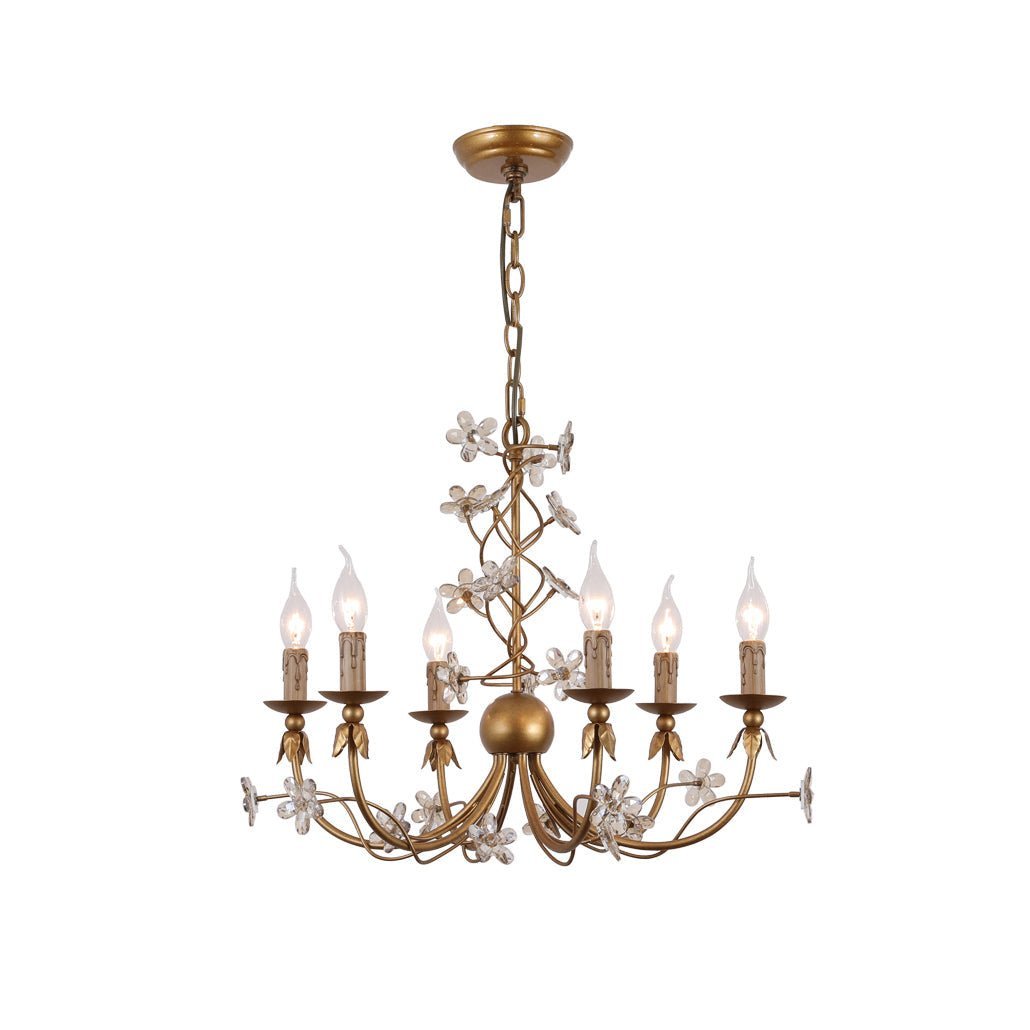 The Krista chandelier’s floral elegance makes it perfect for dining rooms, living rooms, or any space that welcomes traditional charm with open arms.