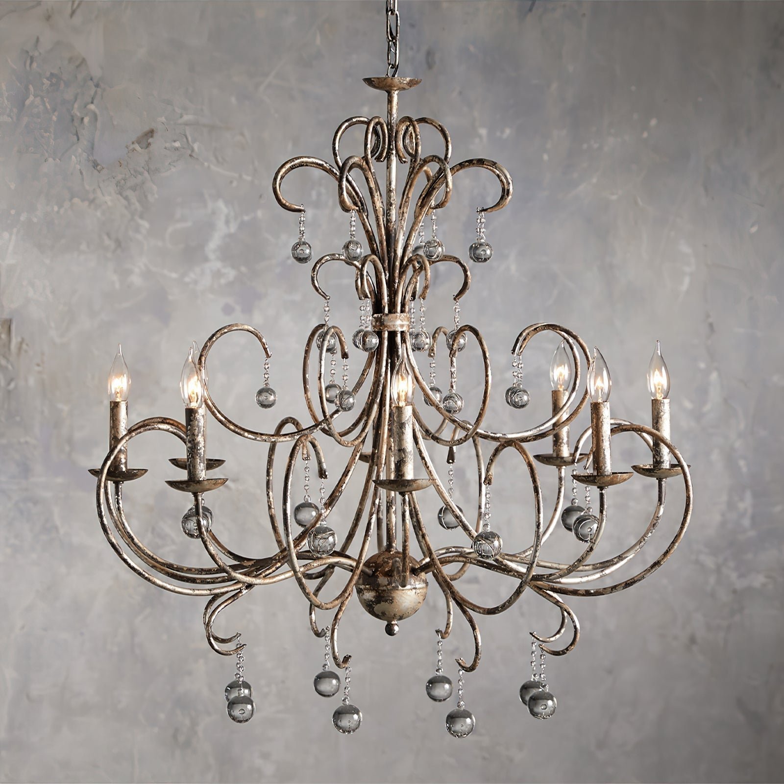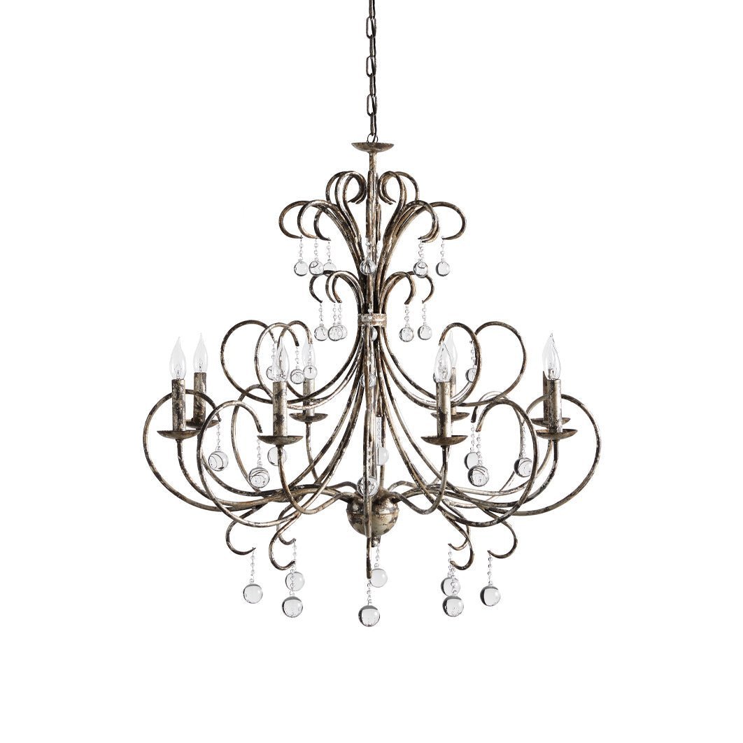 This chandelier’s ornate design is ideal for adding a luxurious element to dining rooms, living rooms, or grand entryways, where its elegance can truly shine.
