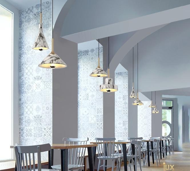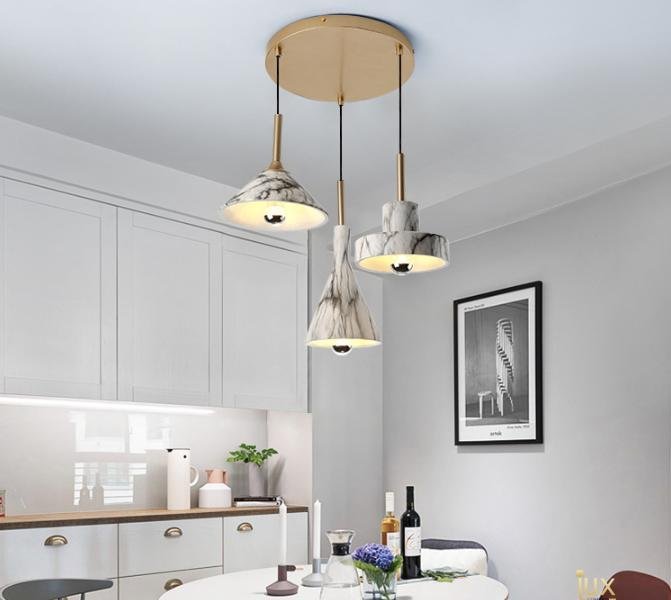 The Lavda pendant captivates with its marble cascade design, ideal for adding a luxurious touch to various interiors. Suitable for diverse environments, its versatile charm shines in both residential and commercial settings.