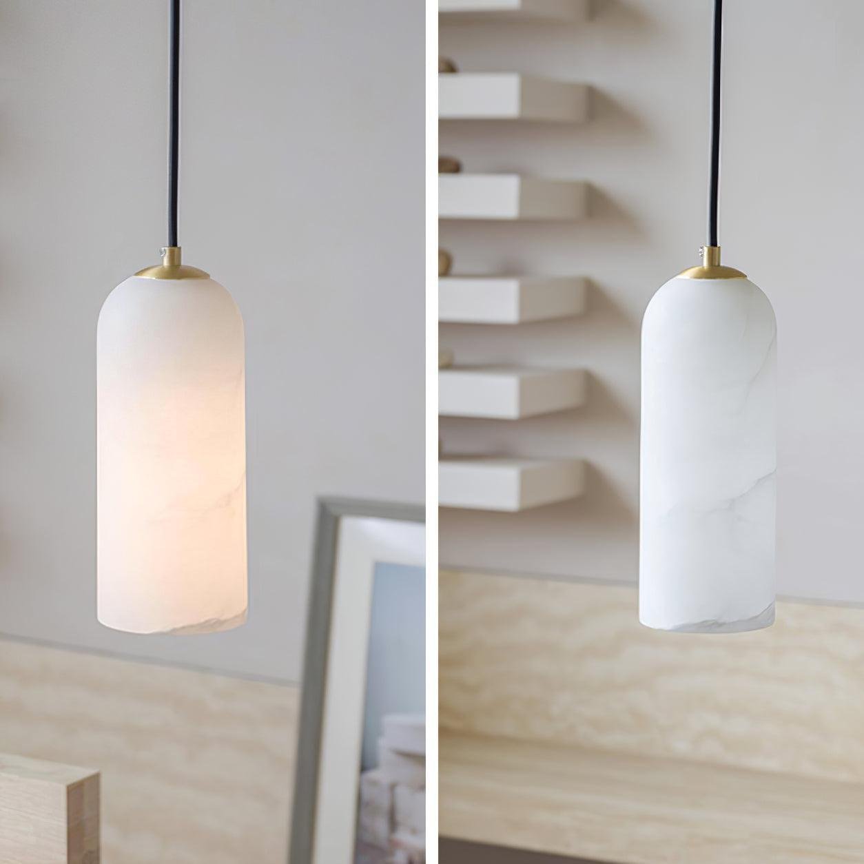 Introducing the Lotta, where timeless elegance meets modern functionality. This pendant light drapes any space in the refined grace of its unique alabaster pillar design, bringing a touch of mid-century sophistication to your decor.