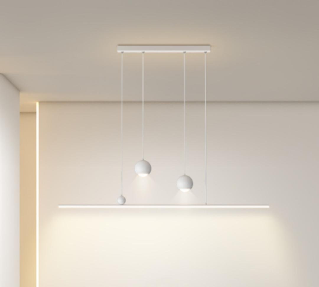 The Orsa captivates with its minimalist aesthetic, featuring smooth, round shapes that blend seamlessly into any contemporary setting. Perfect for brightening up kitchens, dining rooms, or living areas, its adjustable suspension allows for personalized height customization.