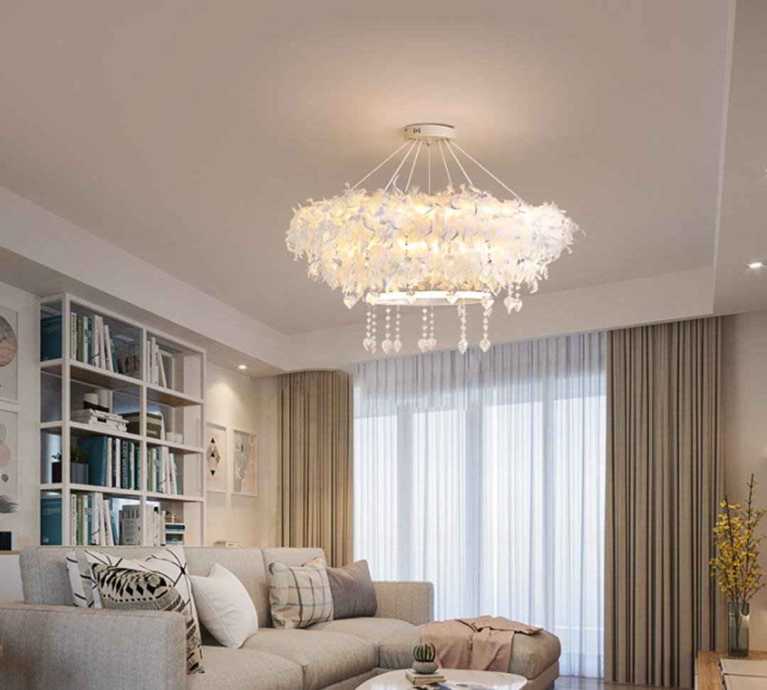 The gentle movement of natural geese feathers coupled with sparkling K9 crystals makes the Randa a centerpiece that captivates attention. Ideal for creating a soothing atmosphere, it beautifully complements both Scandinavian and modern interiors.