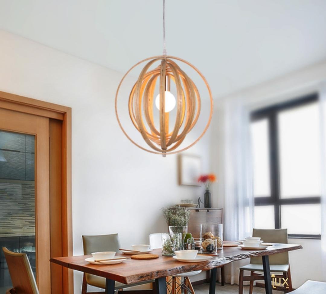 Scandinavian Wooden Orbit Pendant Light Dining Room