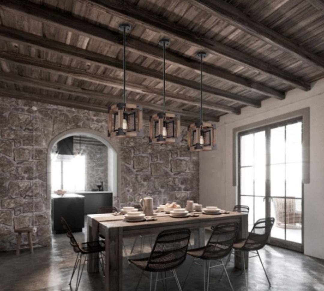 The Ulna’s geometric cage design adds a modern touch to vintage industrial themes. Its high-quality wood body and wrought iron frame create a robust yet elegant appearance, ideal for diverse settings from dining rooms to cafes.