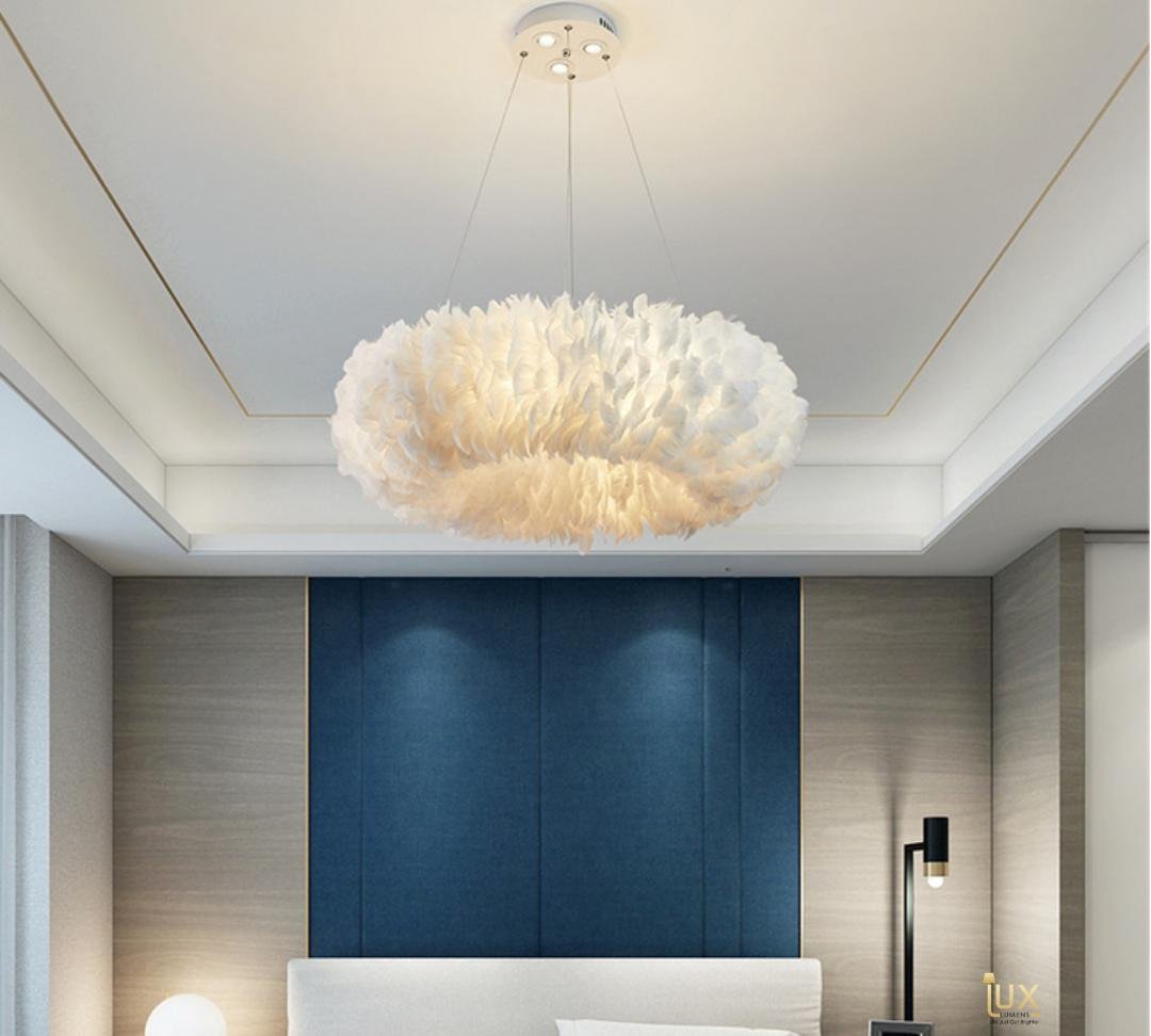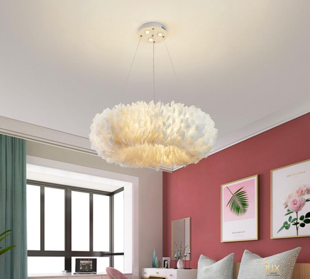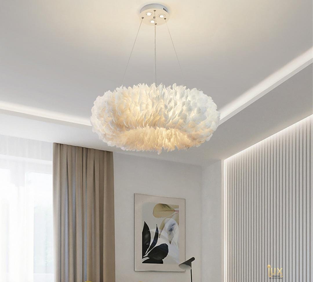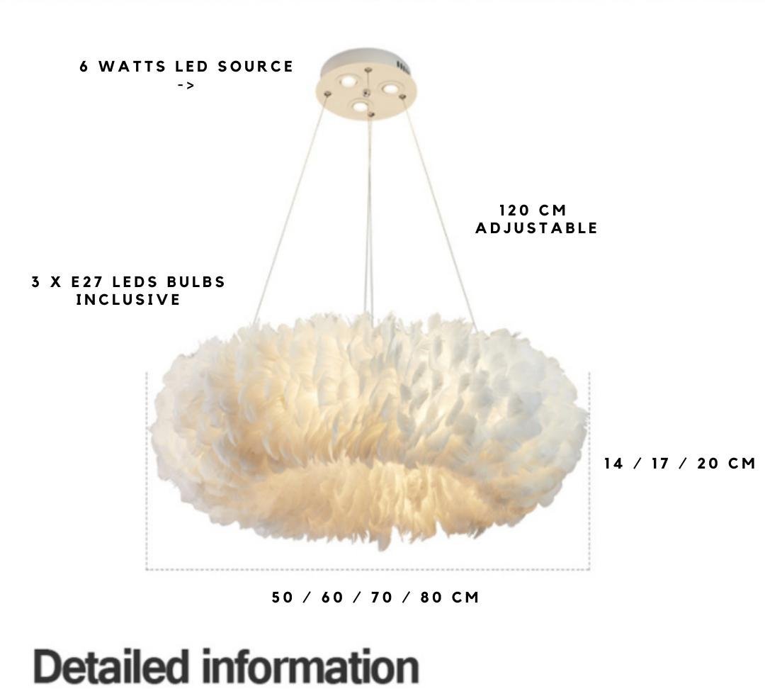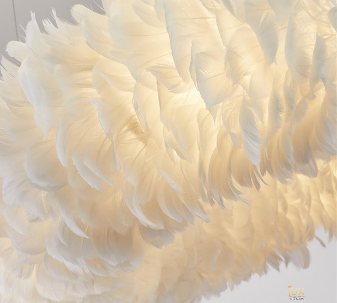 Transform your living space with the Vakna pendant light, a masterpiece that blends whimsy with luxury. Feel embraced by its ethereal glow, as the Feathered Cloud design evokes a serene and dreamy atmosphere, reminiscent of the skies.