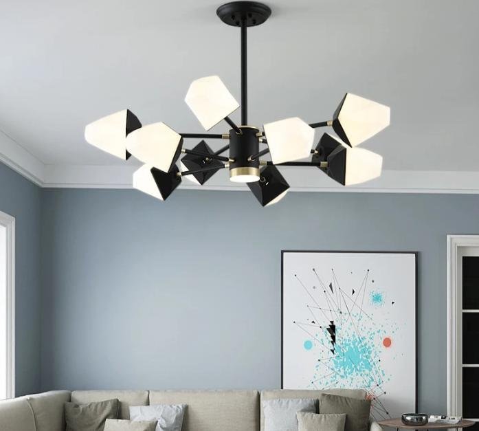 This modern masterpiece thrives in living rooms, dining spaces, and bedrooms, casting a soothing glow with its tri-tone lighting.